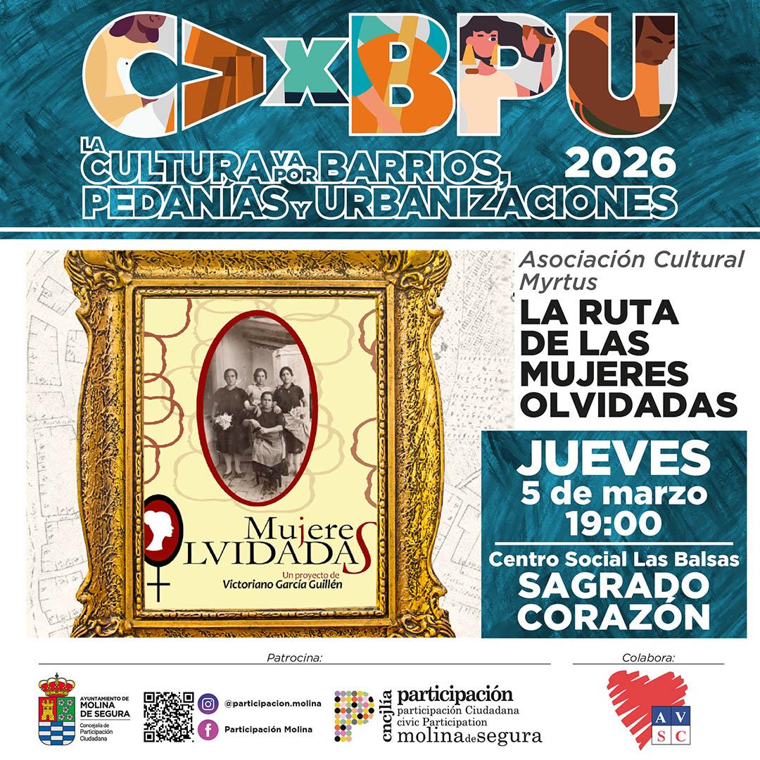 La ruta de las mujeres olvidadas Asociación Cultural Myrtus Centro Social Las Balsas Sagrado Corazón Jueves 5 de Marzo de 2026 19:00 hs Por avesco|2026-02-28T16:25:36+01:00febrero 28th, 2026|Actividades|Comentarios desactivados en La ruta de las mujeres olvidadas Compártelo FacebookTwitterRedditLinkedInWhatsAppTumblrPinterestVkCorreo electrónico